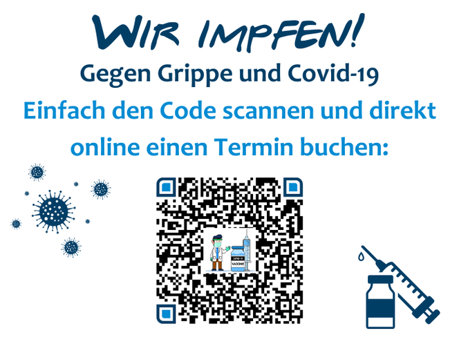 A: Wir impfen jedes Jahr gegen Corona und Grippe. Klicken Sie dafür einfach auf das Banner bzw nehmen Kontakt über das Kontaktformular auf.